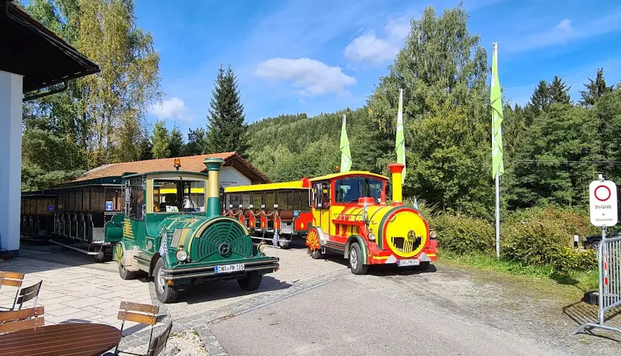 Noch näher am Haus (ca. 150 m) befindet sich die Station der Touristenbahn, die Sie bequem zum Kleinen Abersee und zum Gasthof Seehäusel bringt. Wer auf den Zug warten muss, kann sich diese Zeit mit Kaffee, Kuchen oder Eis am Bahnhof versüßen.